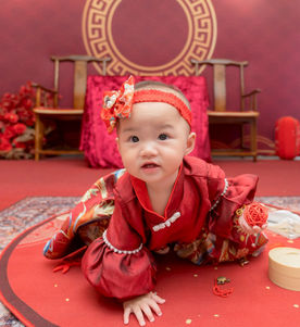 中式抓周專屬佈景,提供寶貝熟悉陌生環境,讓流程順利進行拍出可愛的照片。