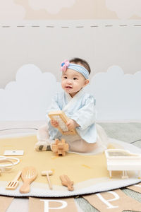 中式抓周專屬佈景,提供寶貝熟悉陌生環境,讓流程順利進行拍出可愛的照片。